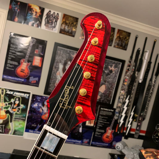 FLAMEY π₯ποΈ! 2025 Gibson Custom Shop 1963 Firebird VII Reissue Figured Red Burst Trans Ruby Fire Tiger Wine Gloss Black Ebony Fretboard Gold F Figured Maple Top Abalone Reverse 7 M2M Made To Measure Limited Les Paul NAMM Slash Standard Ultima Supreme