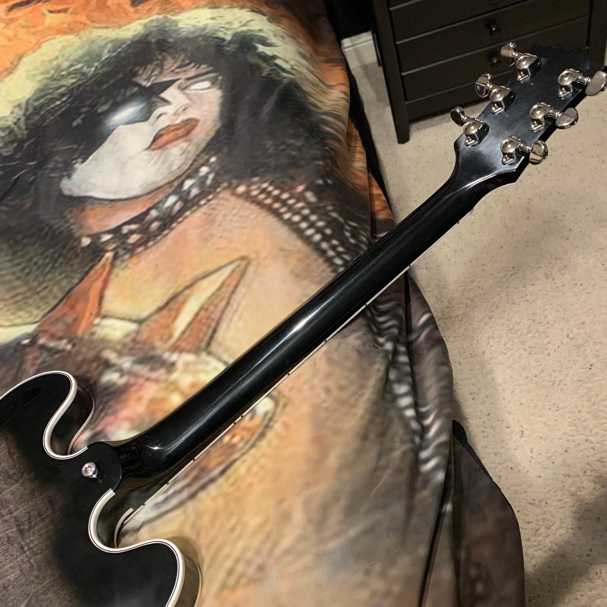 The Gary Clark Jr. ES-355 is powered by a pair of unpotted Custombucker pickups with Alnico 3 magnets that are wired to CTS® audio taper potentiometers and paper-in-oil capacitors, along with a Switchcraft® three-way toggle switch and 1/4” output jack. The volume and tone controls are topped with black Top Hat knobs with silver reflectors and equipped with dial pointers. A mono Varitone control with a black chicken head knob provides even more tonal versatility.